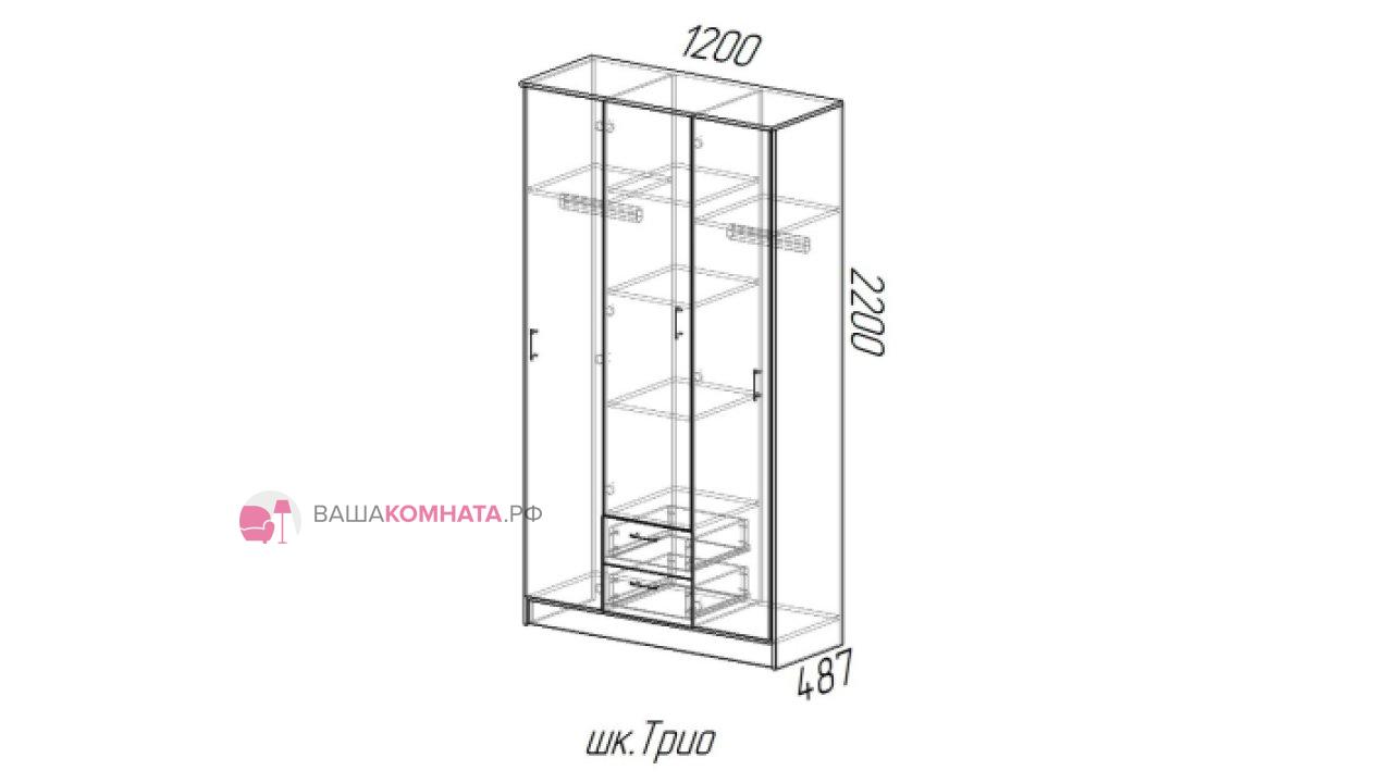 Также Вы можете ознакомиться с товаром данной модели с улучшенной фурнитурой: Шкаф 3х-створчатый "Трио"