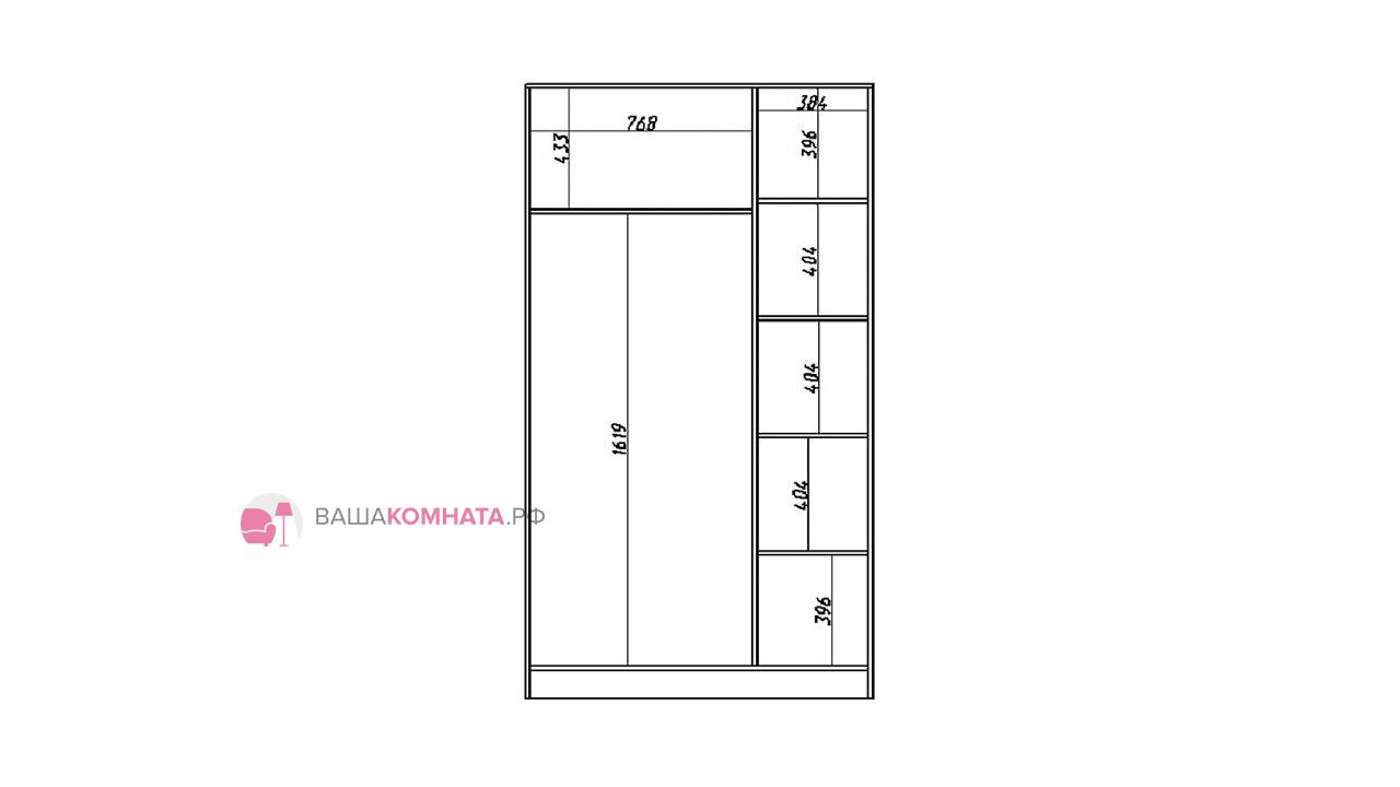 *Дополнительно шкаф можно укомплектовать зеркалами с внешней или внутренней стороны фасада, антресолью и внутренними ящиками.
