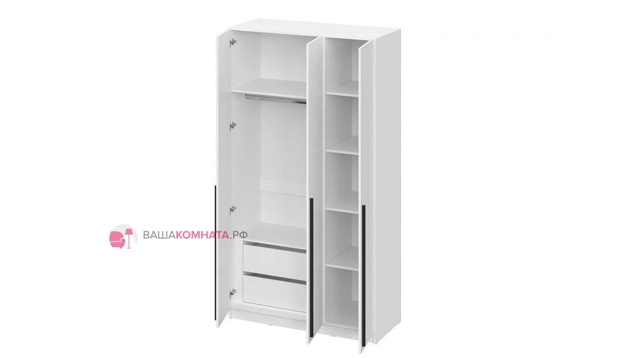 Шкаф "Берген" ШК-1200 с зеркалами и ящиками (Улучшенная фурнитура) - Белое дерево