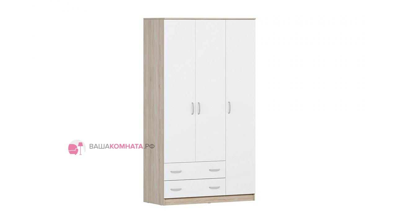 Шкаф двухдверный "Комфорт-10" с ящиками SL - Дуб Сонома светлый / Белый (Гладкий)